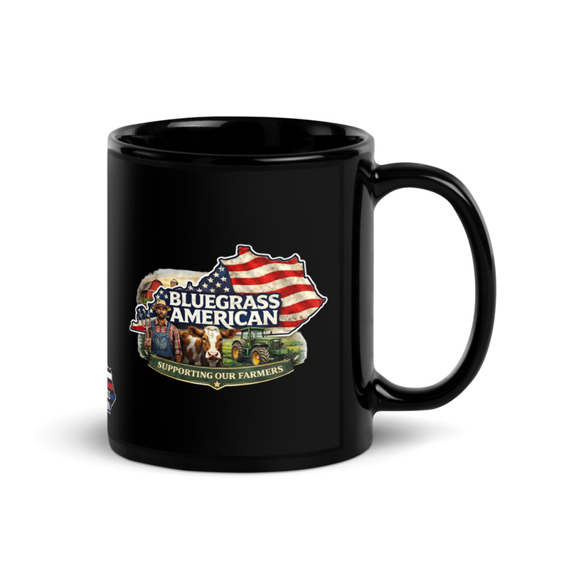 Supporting Farmers Black Glossy Mug | Bluegrass American