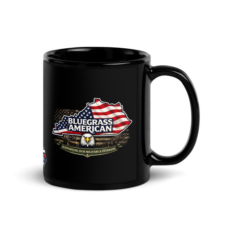 Supporting Military & Veterans Black Glossy Mug | Bluegrass American