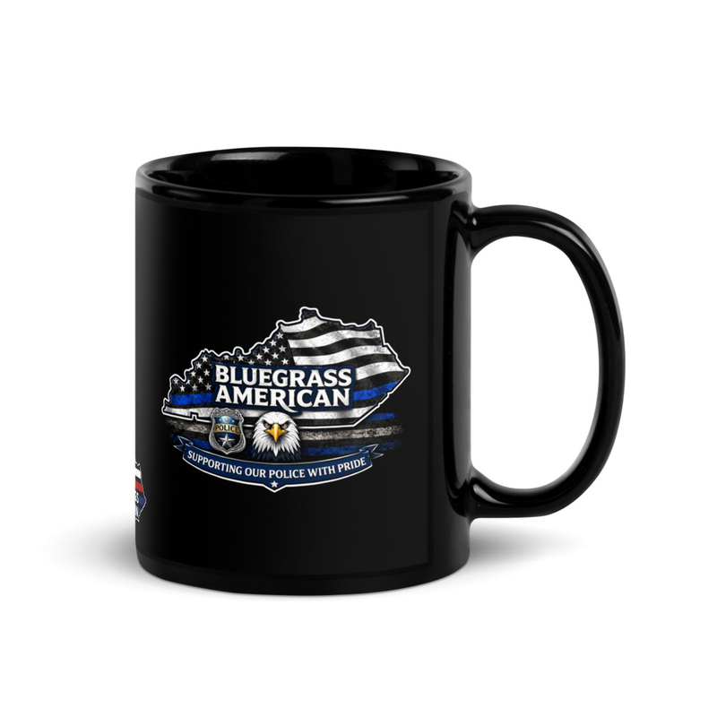 Bluegrass American Supporting Our Police With Pride Black Glossy Coffee Mug – Back the Blue Gift Idea | Bluegrass American